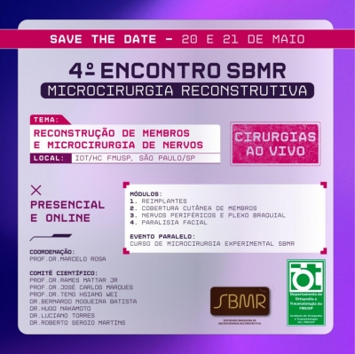 Inscrição: https://www.microcirurgia.org.br/4encontro-sbmr/