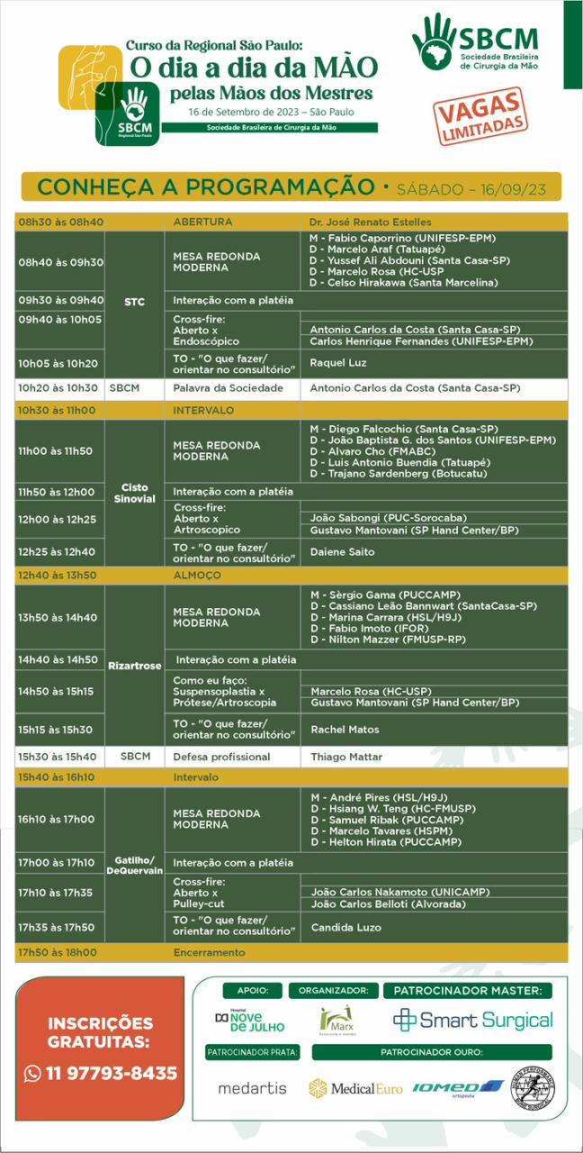 16/09/2023Curso da Regional São Paulo da Sociedade Brasileira de Cirurgia da Mão 2023