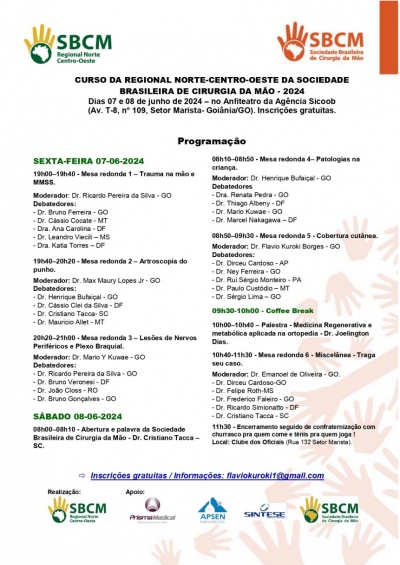 07/06/2024Curso da Sociedade Brasileira de Cirurgia da Mão - Regional Norte-Centro-Oeste