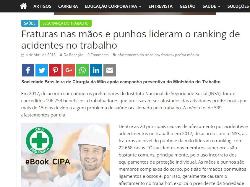 Fonte: Mundo RHSociedade Brasileira de Cirurgia da Mão apoia campanha preventiva do Ministério do Trabalho