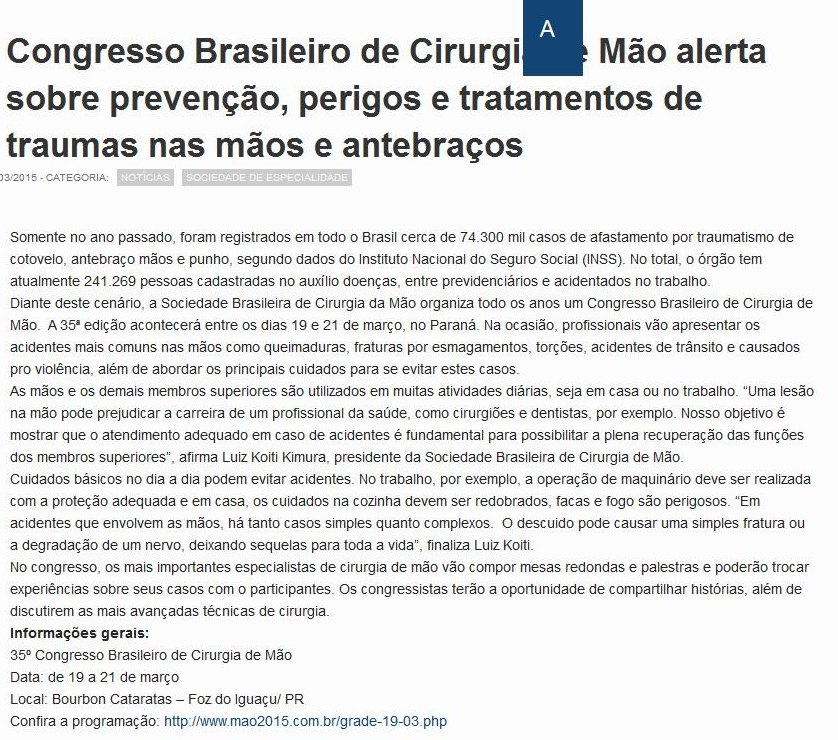 As mãos e os demais membros superiores são utilizados em muitas atividades diárias, seja em casa ou no trabalho. “Uma lesão na mão pode prejudicar a carreira de um profissional da saúde, como cirurgiões e dentistas, por exemplo. Nosso objetivo é mostrar que o atendimento adequado em caso de acidentes é fundamental para possibilitar a plena recuperação das funções dos membros superiores”, afirma Luiz Koiti Kimura, presidente da Sociedade Brasileira de Cirurgia de Mão.