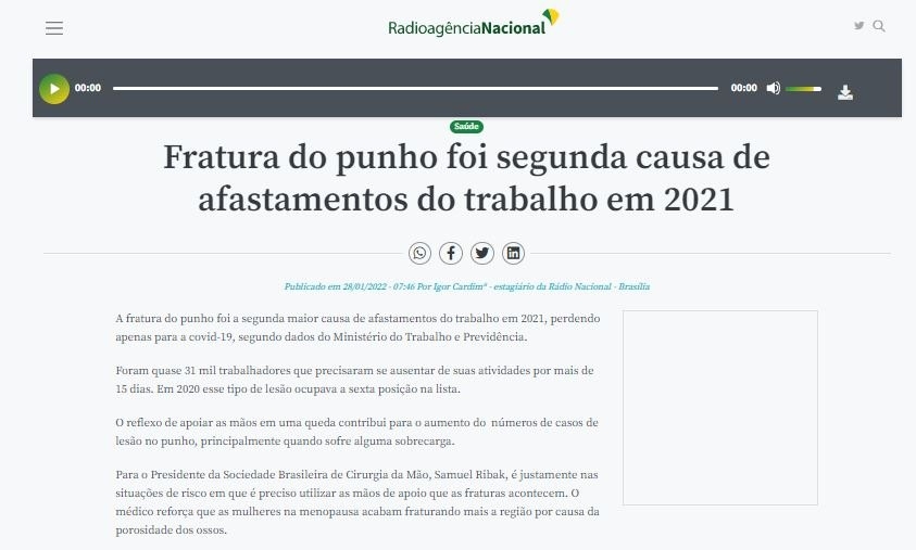 A fratura do punho foi a segunda maior causa de afastamentos do trabalho em 2021, perdendo apenas para a Covid-19, segundo dados do Ministério do Trabalho e Previdência. Em entrevista à Rádio Nacional, o presidente da Sociedade Brasileira de Cirurgia da Mão (SBCM), Samuel Ribak, explica as situações de risco para esse tipo de ocorrência e reforça que as mulheres na menopausa acabam fraturando mais a região por causa da porosidade dos ossos.