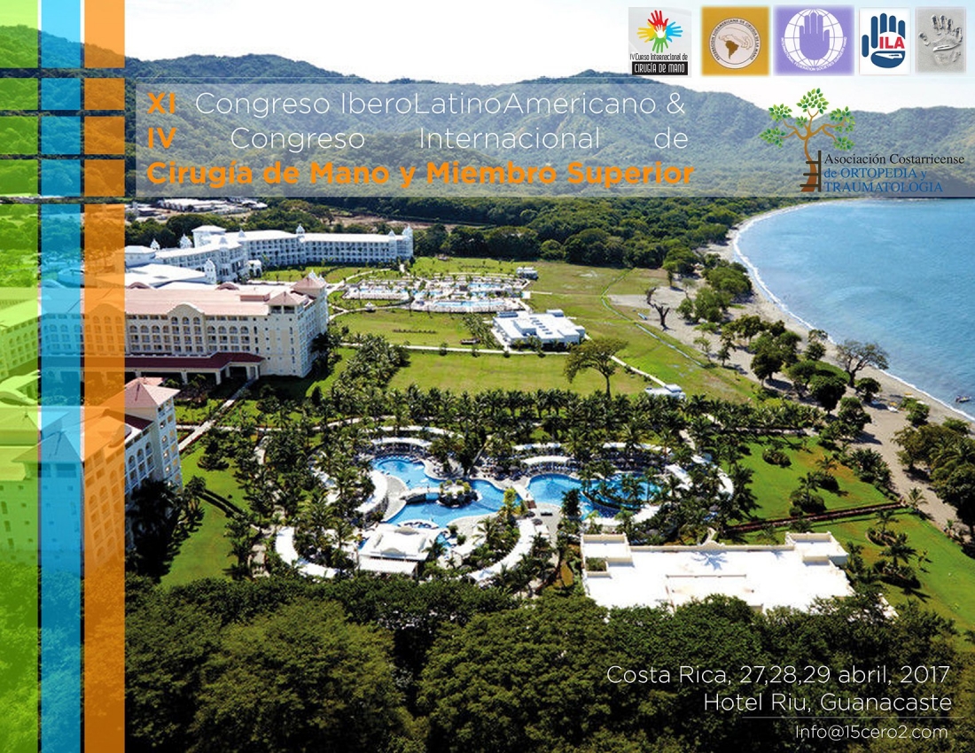 Por este medio les invitamos a participar en el XI Congreso IberoLatinoAmericano & IV Congreso Internacional de Cirugía de Mano y Miembro Superior y 2017, que se llevará a cabo del 27 al 29 de Abril en el Hotel Riu Guanacaste, Costa Rica. Si usted está interesado en participar, contamos con diferentes opciones de hospedaje y transporte para su estadía en Costa Rica durante el congreso. ver detalles en los enlaces