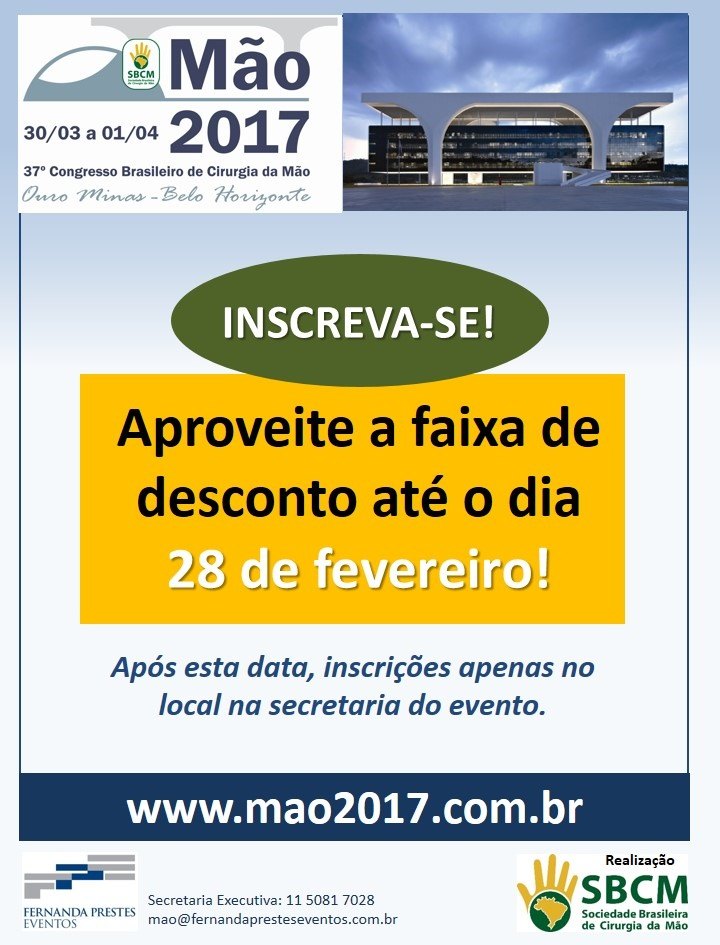 Inscrição do 37º Congresso Brasileiro de Cirurgia da Mão tem desconto até dia 28/2