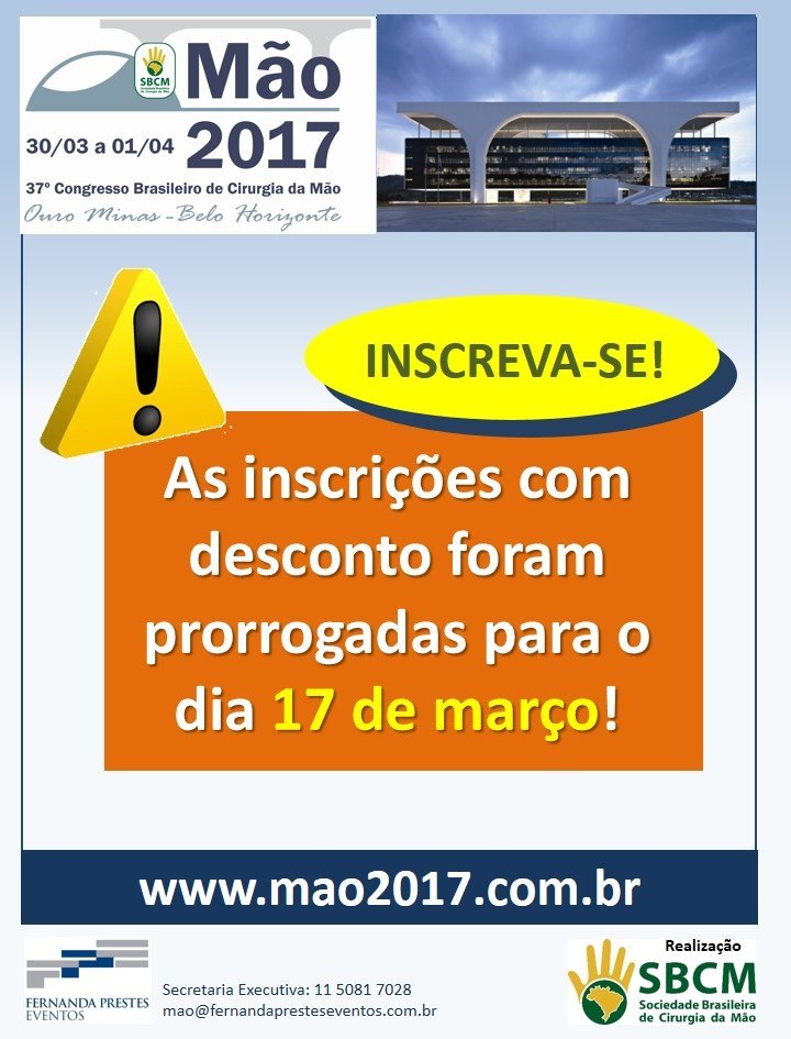 Inscrições do 37º Congresso Brasileiro de Cirurgia da Mão prorrogadas