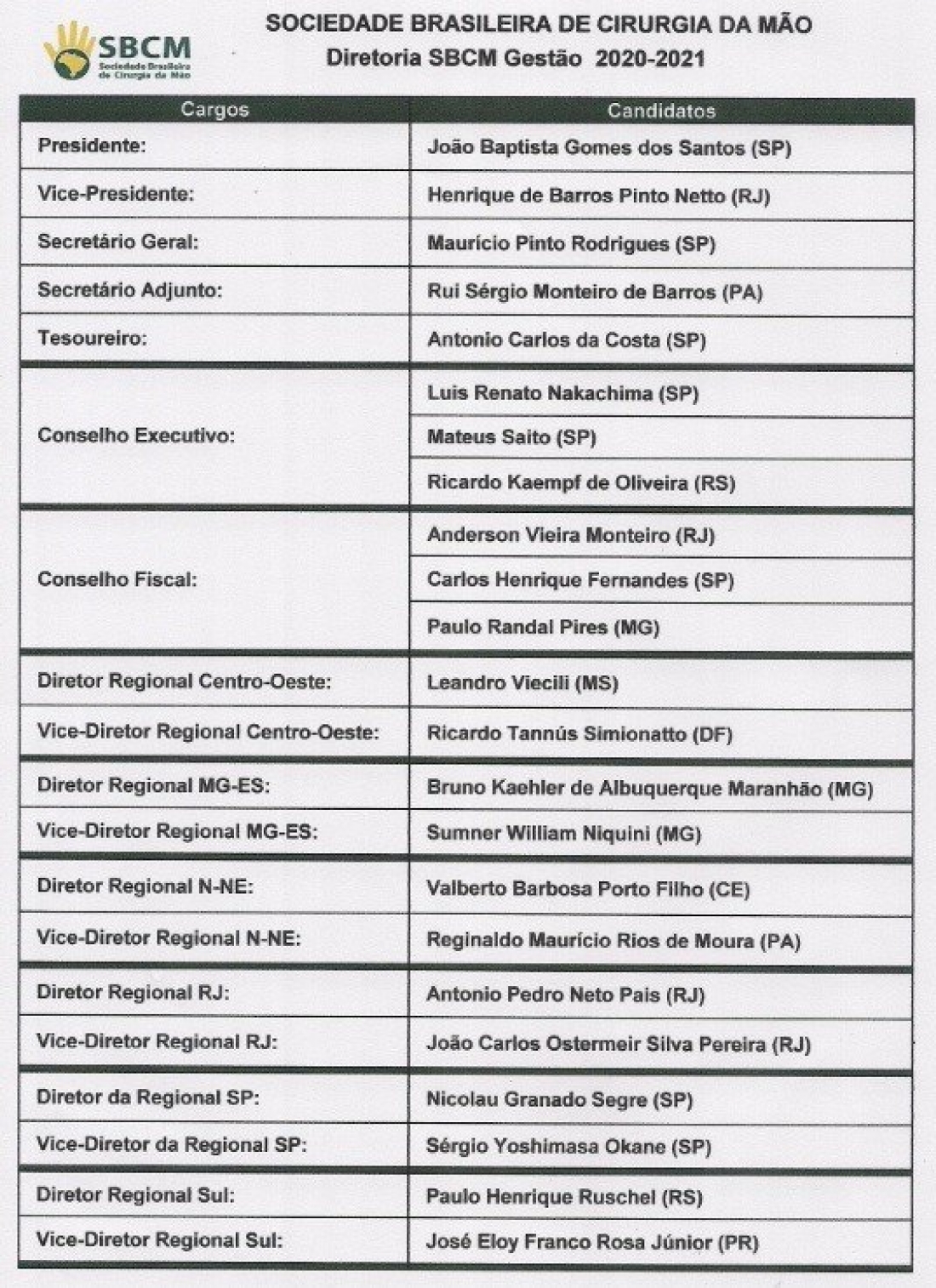 Abaixo, os candidatos SBCM para a Gestão 2020-2021: