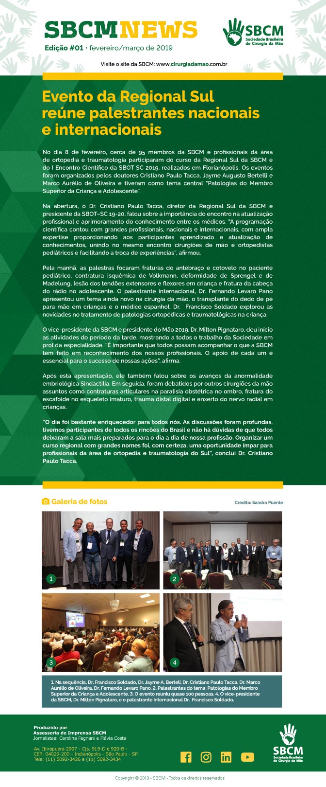 No dia 8 de fevereiro, 95 membros da SBCM e profissionais da área de ortopedia e traumatologia participaram do curso da Regional Sul da SBCM e do I Encontro Científico da SBOT SC 2019, realizados em Florianópolis.