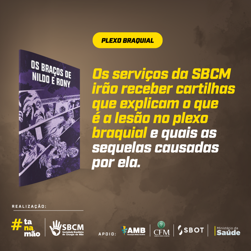 Para intensificar a campanha sobre a prevenção de lesões no plexo braquial da SBCM, os chefes dos serviços credenciados a Sociedade irão receber a cartilha ‘Os braços de Nildo e Rony’, que, por meio de uma história de gibi, explica o que é a lesão de plexo braquial e quais as consequências que podem trazer ao coro humano.