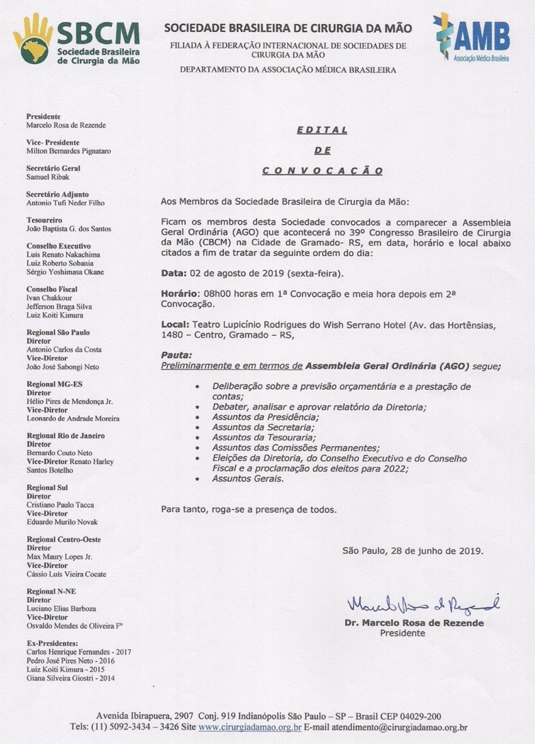 Aos Membros da Sociedade Brasileira de Cirurgia da Mão