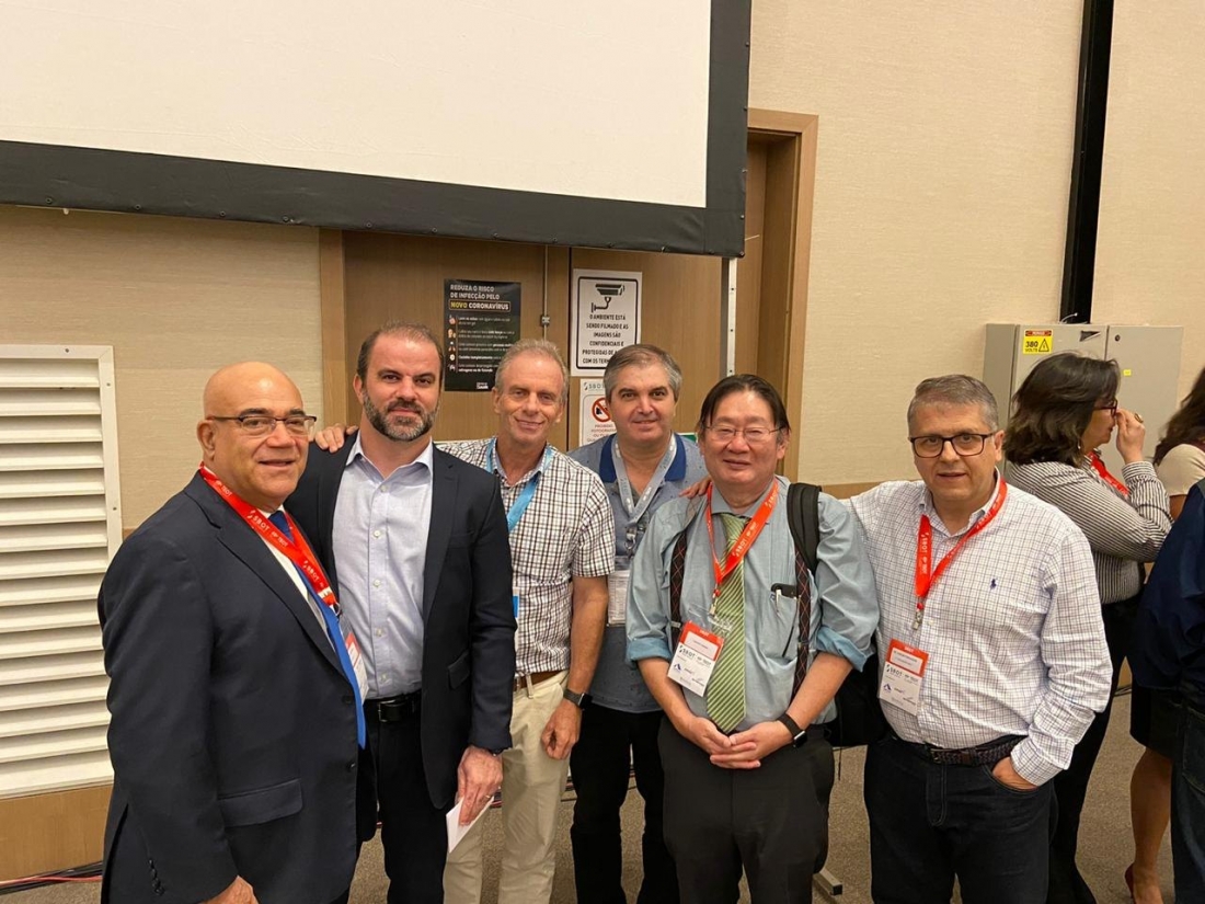 Na foto, posam o presidente da SBOT Nacional, Dr. Glaydson Godinho, o Diretor do Departamento de Atenção Especializada e Temática da Secretaria de Atenção à Saúde – MS, Dr. Marcelo Campos de Oliveira, o 2º vice-presidente da SBCM, Dr. Samuel Ribak, o presidente da Sociedade, Dr. João Baptista Gomes dos Santos e os ex-presidentes e membros, doutores Luiz Koiti Kimura e Carlos Henrique Fernandes.