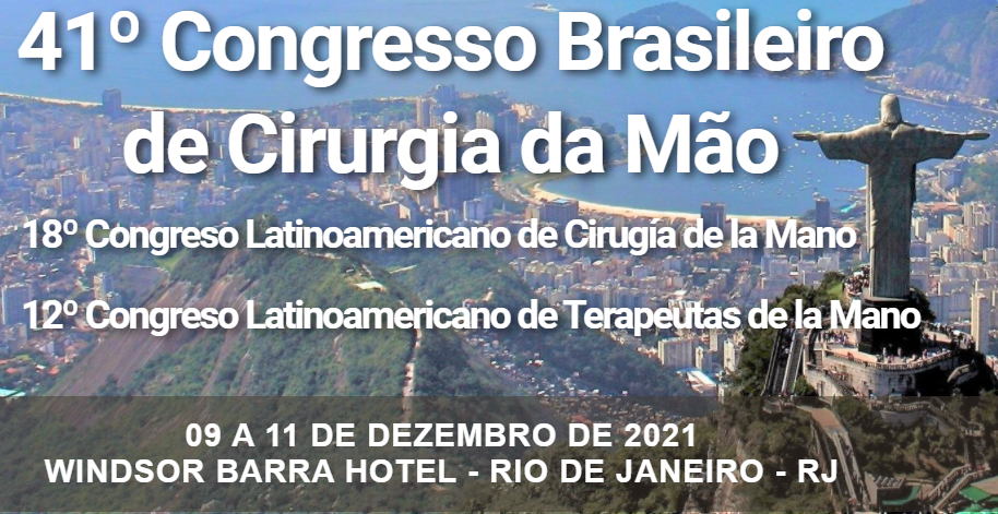 A 41ª edição do Congresso Brasileiro de Cirurgia da Mão será realizada entre os dias 9 e 11 de dezembro de 2021 no Rio de Janeiro (RJ) e traz como temas oficiais a mão infantil, nervo periférico, fratura rádio distal, escafoide e tendão flexor.