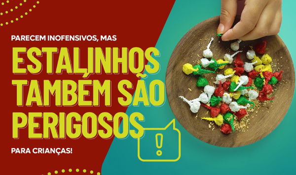 Além disso, os estalinhos não devem ser estourados perto de vidros ou garrafas que podem quebrar e espalhar estilhaços.