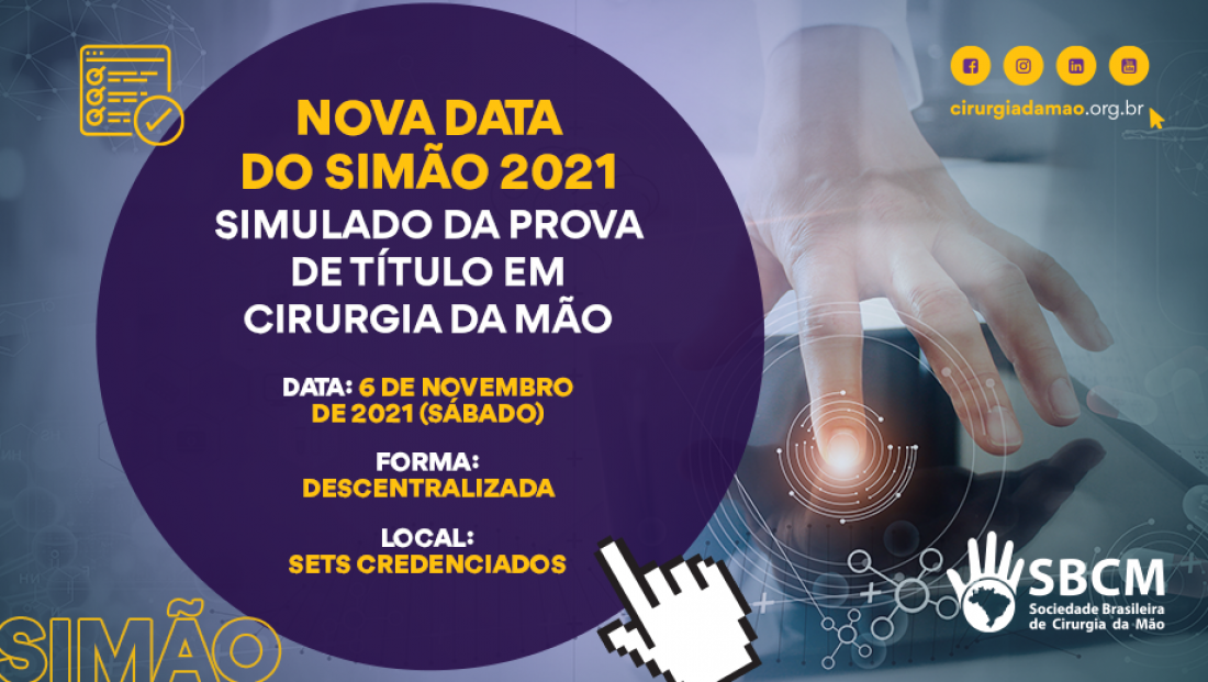 A Sociedade Brasileira de Cirurgia da Mão (SBCM), por meio da Comissão de Ensino e Treinamento, convidam a todos os Residentes de Cirurgia da Mão a participarem do SIMÃO 2021 – que foi transferido para o dia 06 de novembro de 2021, sábado.