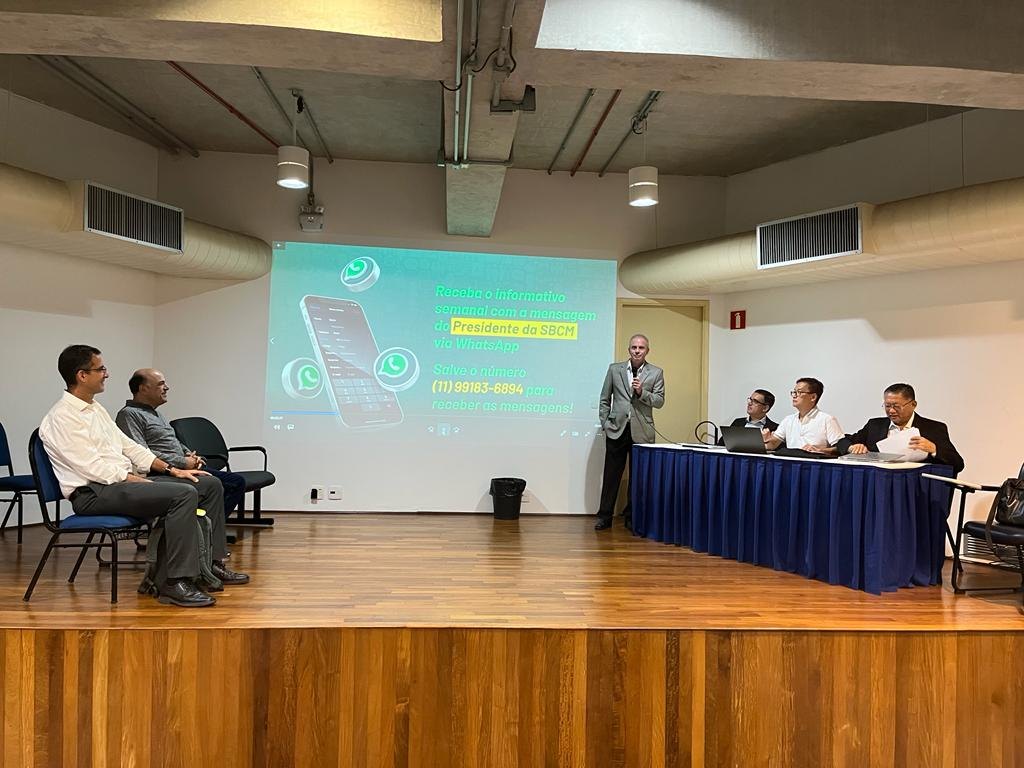 No auditório da PUC Campinas, a Diretoria da Sociedade Brasileira de Cirurgia da Mão (SBCM) se reúne para alinhamento dos últimos detalhes do evento e de outras pautas internas, como a composição da CEC (Comissão de Educação Continuada), os cursos das Regionais neste segundo semestre, entre outros assuntos.