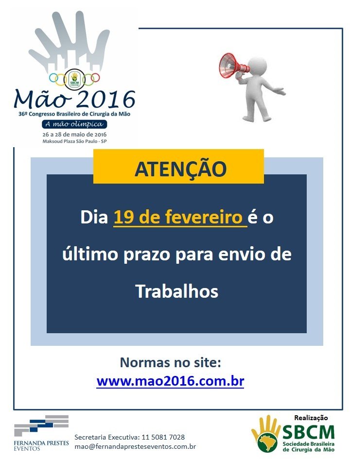 Congresso Mão 2016 - Temas Livres devem ser entregues até dia 19/02