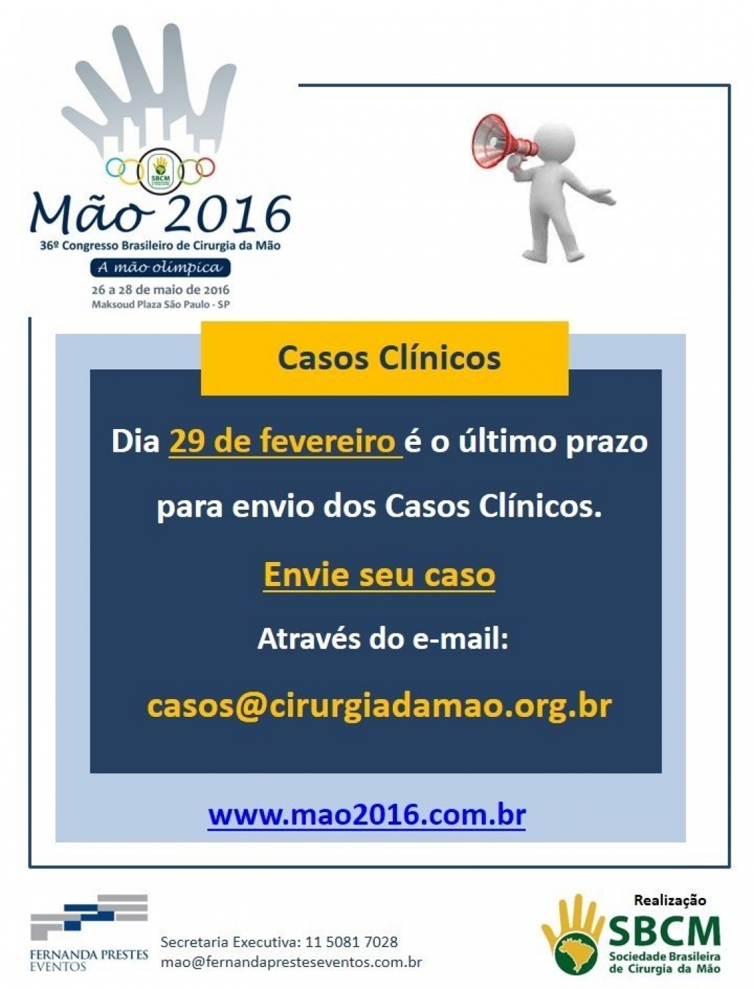 Mão 2016 - Prorrogado prazo para envio de casos clínicos