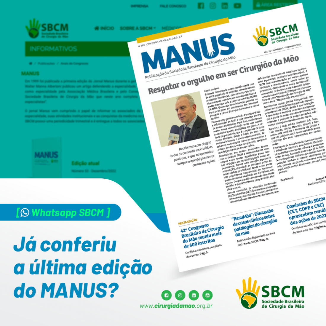 A edição número 42 do Jornal MANUS traz diversos temas de interesse do setor. Em dezembro a SBCM publicou a mais nova edição do Jornal, que conta com os principais acontecimentos da Sociedade durante o ano de 2022.