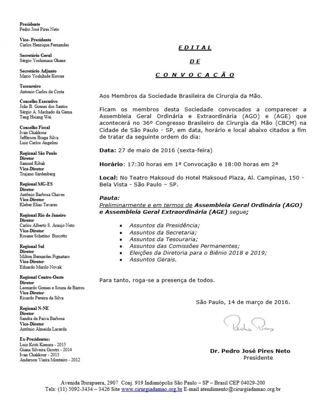 Edital de Convocação - Assembleia Geral Ordinária e Extraordinária