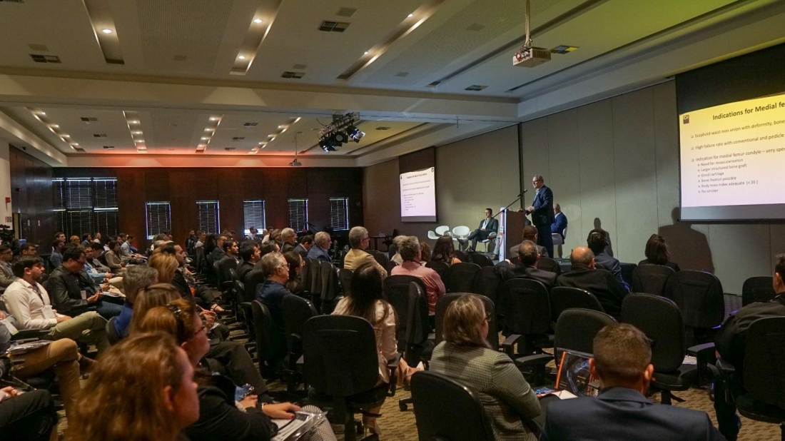 Na Sala 1, aconteceu o Simpósio IWAS, com apresentações de especialistas nacionais e internacionais. Entre as abordagens, técnicas super avançadas em artroscopia do punho.