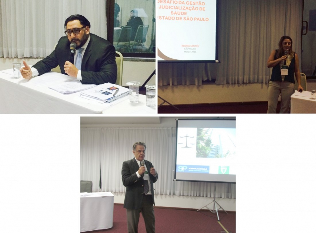 A mesa sobre Judicialização da Medicina no Terceiro Fórum de Defesa Profissional da SBCM, foi coordenada por Eduardo Murilo Novak e trouxe o Juiz Thiago Massad, a assessora técnica de Gabinete da Secretaria Estadual de Saúde, a advogada, Renata Gomes dos Santos e o professor e diretor clínico do Hospital São Paulo, José Carlos Baptista que falou sobre as dificuldades dos hospitais públicos no atendimento das demandas judiciais.