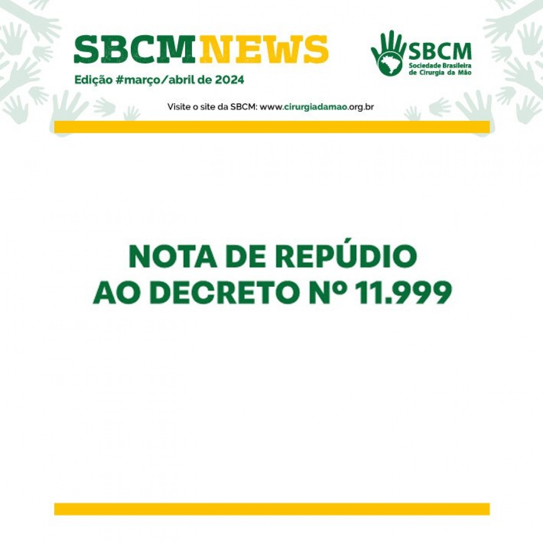 O compromisso inabalável da Sociedade Brasileira de Cirurgia da Mão (SBCM) com a excelência médica e a qualidade do atendimento à saúde nos impulsiona a repudiar o Decreto nº 11.999 (17/04/2024), que afeta diretamente a Comissão Nacional de Residência Médica (CNRM).