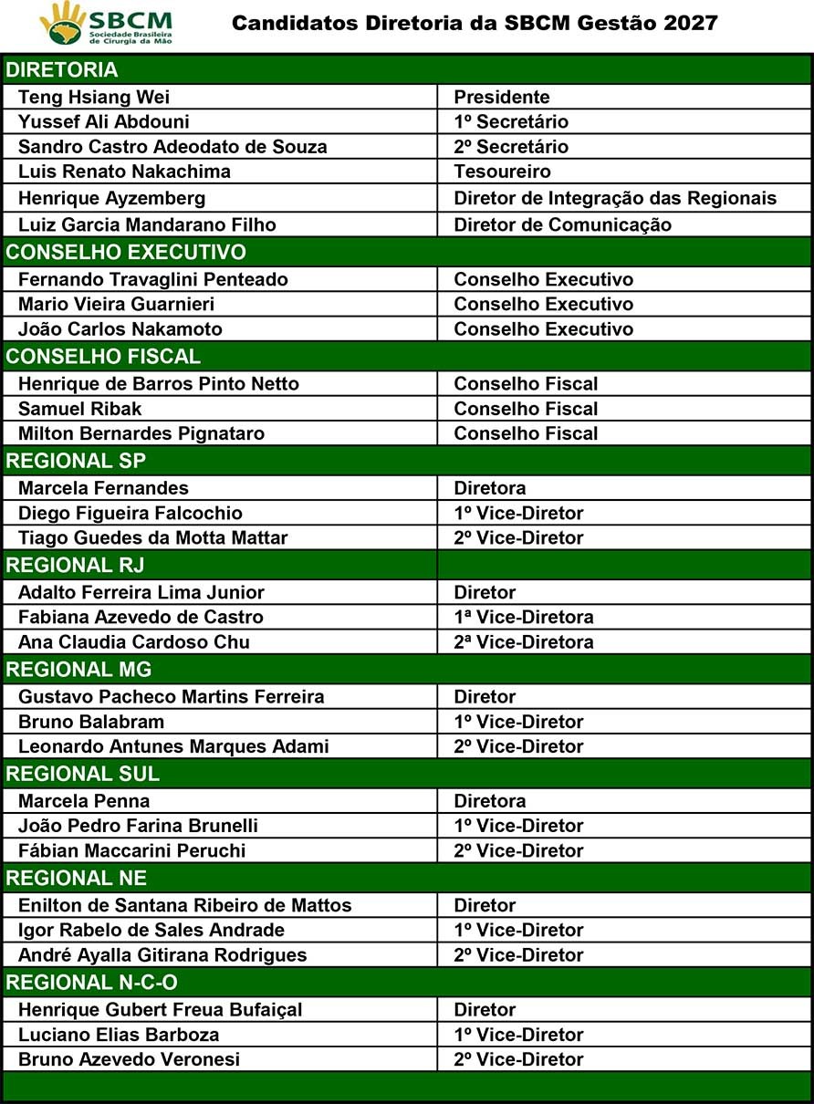 A secretaria da SBCM recebeu as seguintes inscrições: