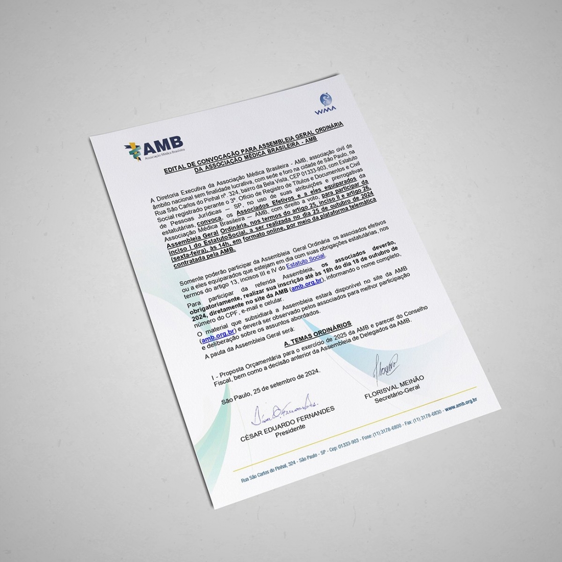EDITAL DE CONVOCAÇÃO PARA ASSEMBLEIA GERAL ORDINÁRIA DA ASSOCIAÇÃO MÉDICA BRASILEIRA - AMB