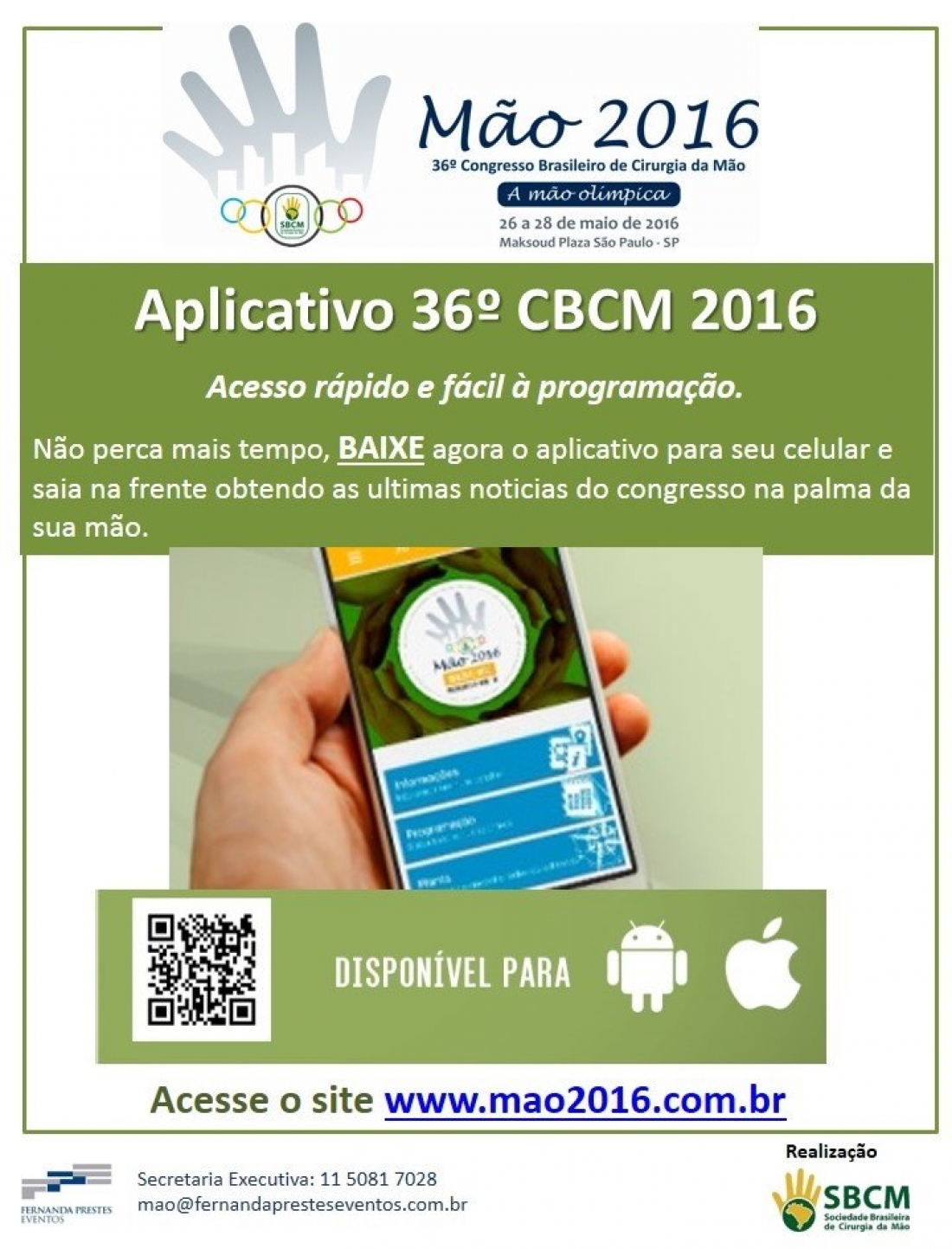 Agora o 36º CBCM 2016 tem aplicativo. Nele, serão disponibilizadas as últimas notícias do Congresso.