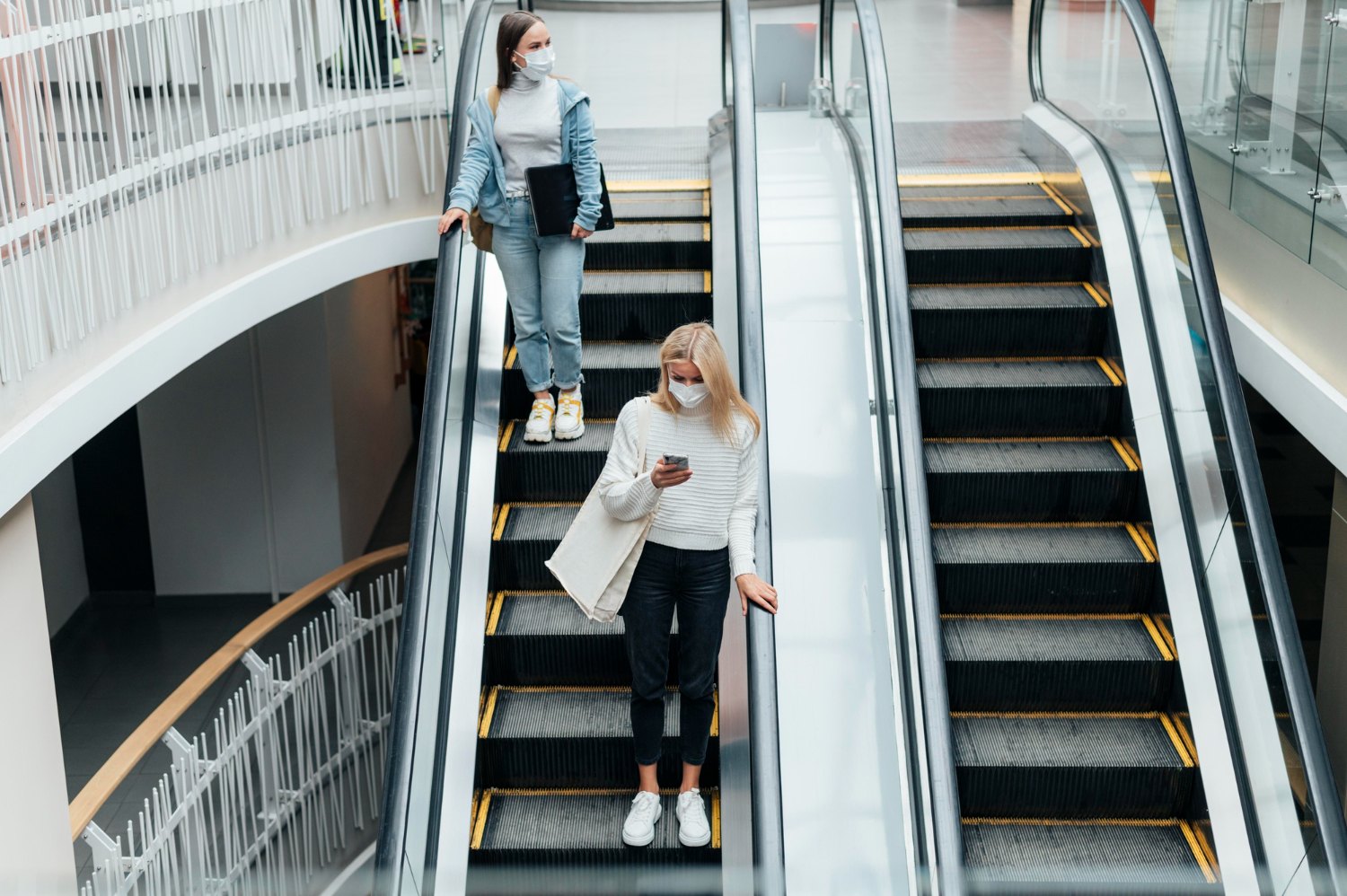 Cuidado com as mãos ao utilizar elevadores e escadas rolantes