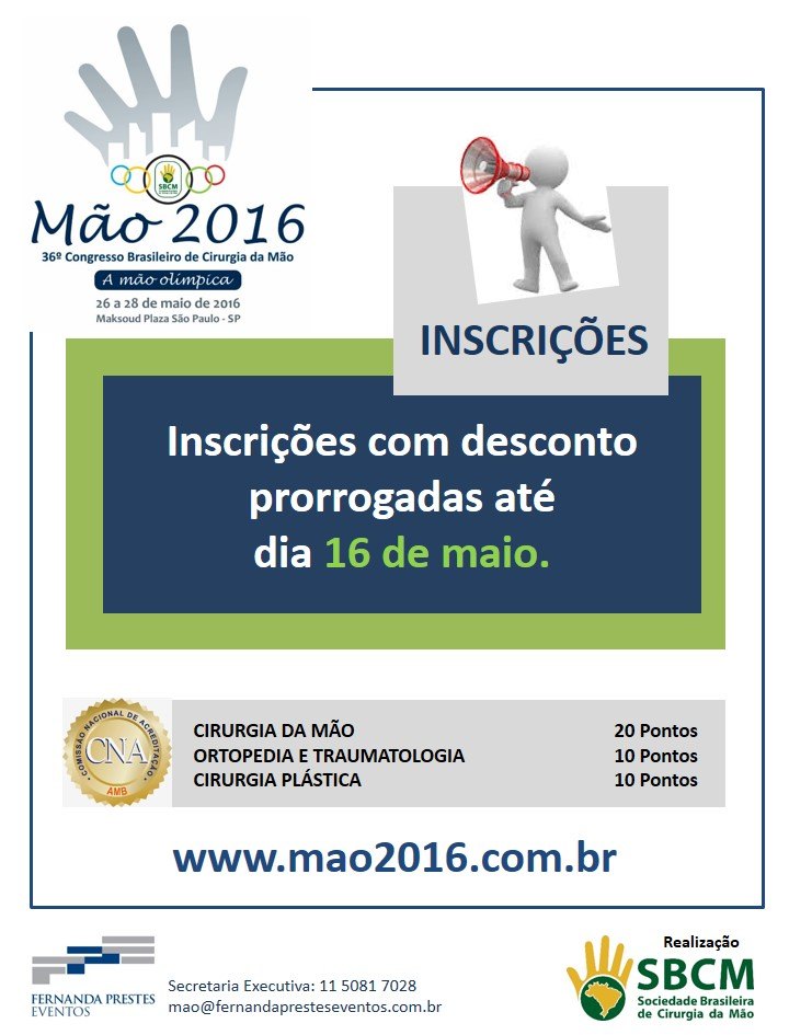 MÃO 2016: inscrições prorrogadas até dia 16/5